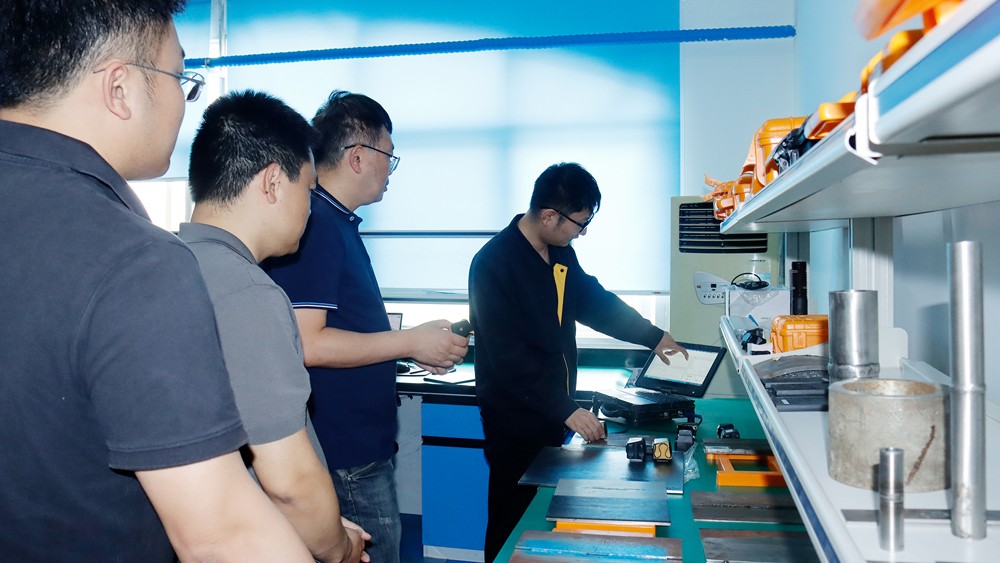 隨后我公司薛建祥總經(jīng)理陪同陳副院長一行參觀我公司綜合辦公樓、研發(fā)生產(chǎn)中心、埋地管道實訓基地、工程公司辦公樓,詳細了解了我公司在便攜磁粉探傷儀、ACFM交流電磁場檢測儀、腐蝕電磁測厚機器人等產(chǎn)品的研發(fā)、生產(chǎn)過程,對我公司在產(chǎn)品研發(fā)方面的工作表示認可,并規(guī)劃了雙方要下一步交流合作的方向,對我司子公司工程公司在埋地鋼制管道及PE管道的取得的檢測成績給予贊賞。